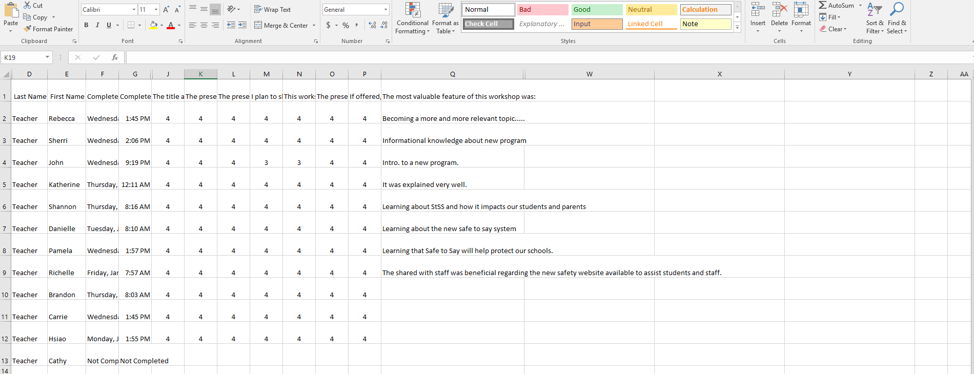 - Professional Development Feedback Form - a questionnaire that teachers complete after attending an inservice training
